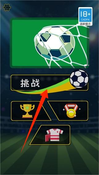 1、點(diǎn)擊“挑戰(zhàn)”進(jìn)入關(guān)卡,操控角色用足球突破障礙,完成射門等目標(biāo)推進(jìn)進(jìn)程。