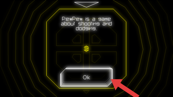 2、文字說明PewPew是一款關于射擊和躲避類型,還有按鈕Ok(確認),呈現(xiàn)的是開場對玩法的簡單介紹界面,引導玩家確認進入。