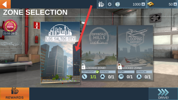 2、在區(qū)域選擇界面,選擇【洛斯薩爾托斯市】,該區(qū)域?yàn)槌跏伎赏鎱^(qū)域,點(diǎn)擊后即可進(jìn)入城市駕駛場(chǎng)景。