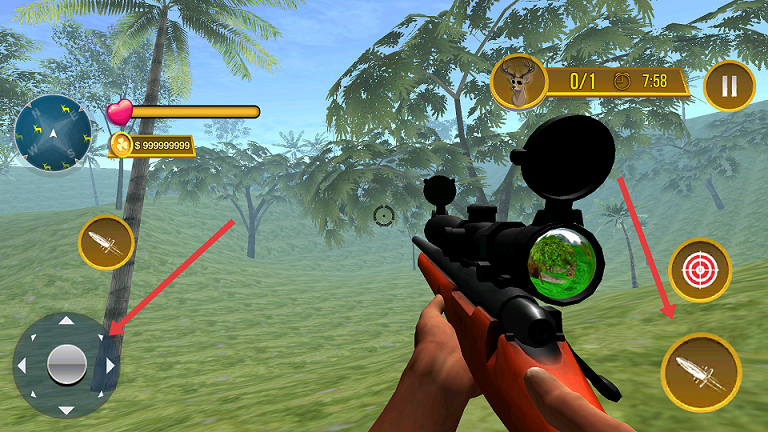 3、左手移動,右手輔助轉(zhuǎn)視角,小地圖查看目標(biāo)方位打開瞄準(zhǔn)鏡。