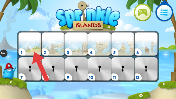 1、這是超級(jí)救火隊(duì)員島嶼的關(guān)卡選擇界面,屬于休閑益智類,玩家操控水槍滅火解謎,畫(huà)面呈現(xiàn)可挑戰(zhàn)的關(guān)卡列表,1-6關(guān)部分解鎖,7-12關(guān)待解鎖。