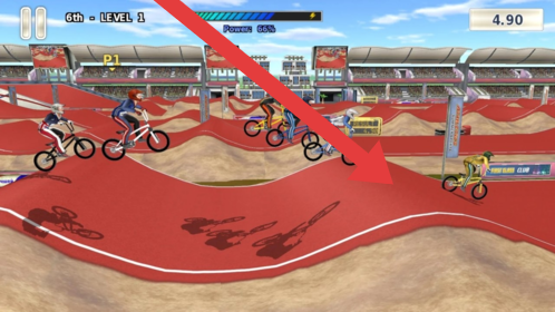 2、小輪車(chē)比賽,按提示操控角色(6th-LEVEL1),在紅色賽道把握重心,飛越坡道,躲避障礙,沖過(guò)終點(diǎn)。
