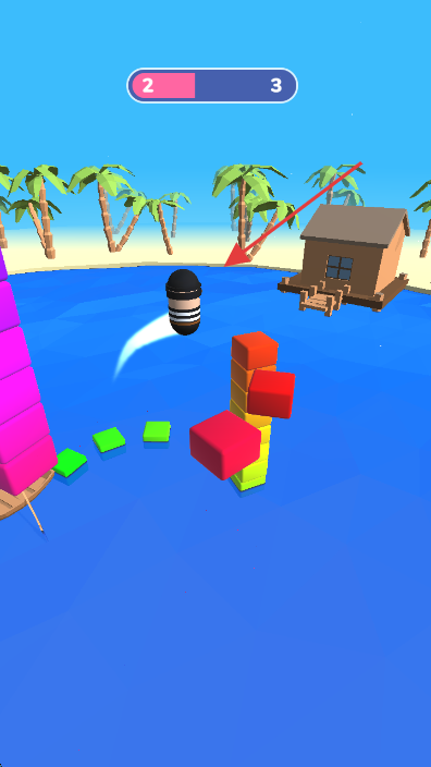 2、在水域場景中,利用彩色方塊搭建通行路徑,避開黑色物體干擾以推進關(guān)卡。