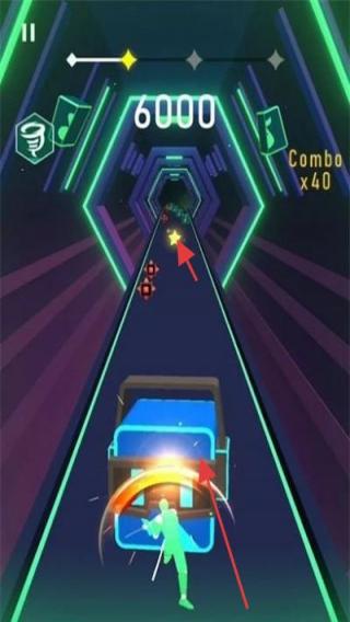 1、進(jìn)入首關(guān)選擇搖滾曲目,光刃隨鼓點(diǎn)亮起,首個(gè)紅色方塊從左側(cè)飛來,滑動(dòng)屏幕完成第一次精準(zhǔn)切割開啟挑戰(zhàn)。
