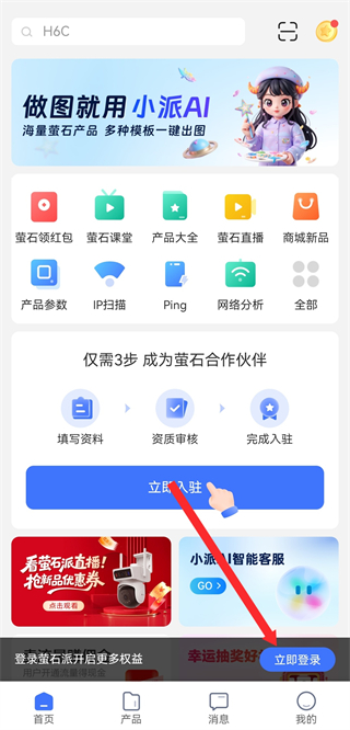 1、打開螢石派APP,點(diǎn)擊我的,進(jìn)入個(gè)人頁面后點(diǎn)擊立即登錄。