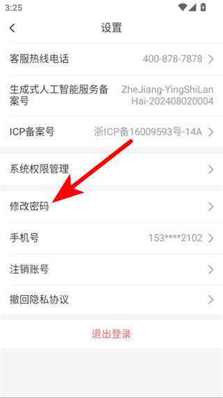 3、在設(shè)置界面里,點(diǎn)擊修改密碼選項(xiàng),進(jìn)入修改密碼頁面。