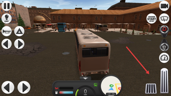 2、進(jìn)入駕駛場景,操控巴士(用右側(cè)踏板、方向鍵),按地圖路線行駛,完成客運(yùn)任務(wù)。