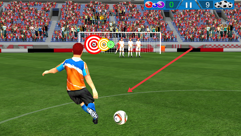 3、手指上滑射門,球會根據上畫弧線射出不同角度,通過訓練大大提升手感。