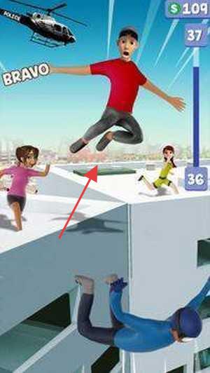 1、屋頂場(chǎng)景中,操控角色跳躍跨越建筑間隙,完成動(dòng)作觸發(fā)【BRAVO】評(píng)價(jià),規(guī)避墜落危險(xiǎn)。