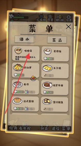 3、關(guān)注餐廳內(nèi)顧客用餐,及時(shí)補(bǔ)充食材、優(yōu)化服務(wù),積累收益升級(jí)設(shè)施、解鎖新菜品。