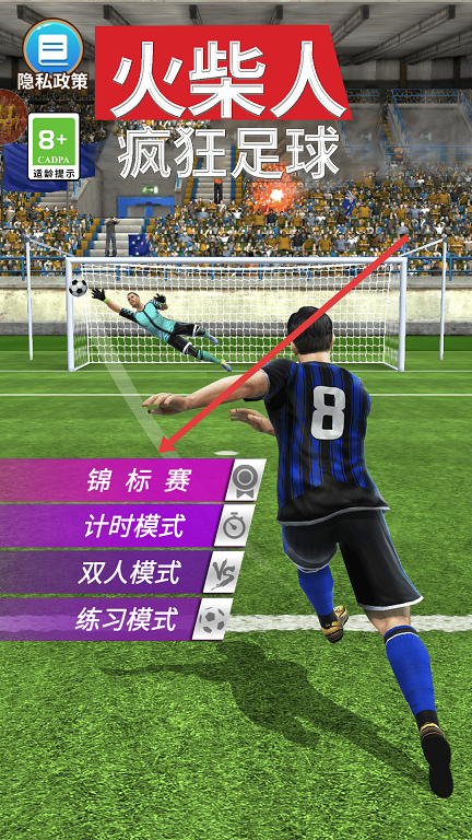 1、亂斗模式:8名玩家同場(chǎng)競(jìng)技,最后站在球上的火柴人才能獲得射門資格。過程中可以使用肘擊、掃堂腿等格斗技,系統(tǒng)會(huì)貼心標(biāo)注"這不是足球比賽"。