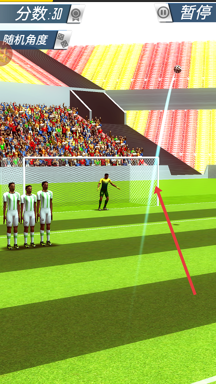 2、點(diǎn)球模式隨機(jī)組成人墻,你需要精準(zhǔn)射擊死角或者使出香蕉球破局。