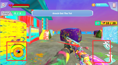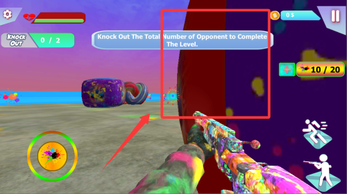 1、游戲開(kāi)始先熟悉移動(dòng)和射擊操作,左右滑動(dòng)控制角色走位,點(diǎn)擊屏幕發(fā)射彩彈。