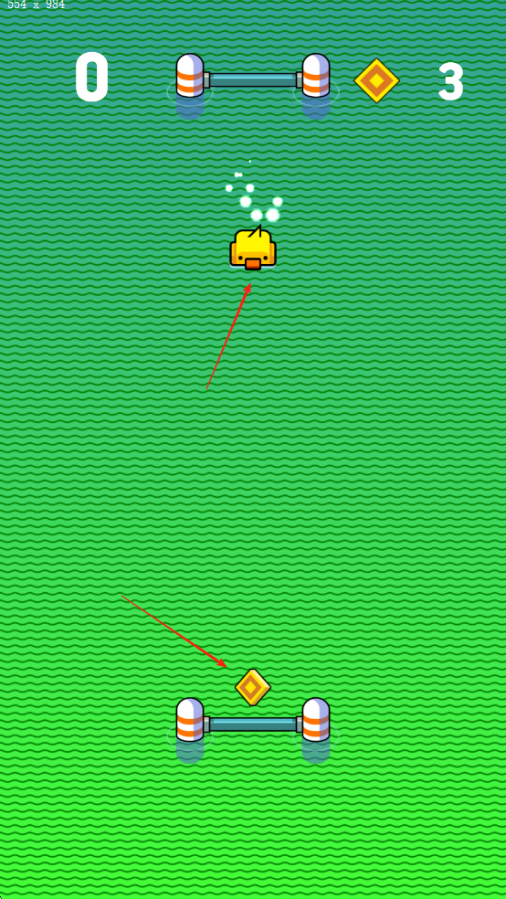 2、在水流湍急區(qū)域,滑動屏幕調(diào)整小鴨子移動方向,借助荷葉的彈力跨越寬距河面,同時收集沿途散落的金色羽毛道具。