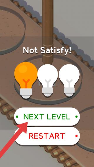 2、文字NotSatisfy!(未達標)、NEXTLEVEL(下一關(guān)),還有代表不同狀態(tài)的燈泡,用于提示玩家操作未達標,可選擇進入下一關(guān)或重新開始本關(guān)。