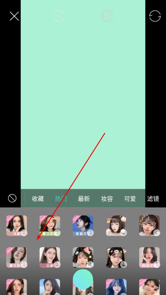 3、選定貼紙如熱門分類里的特效,應(yīng)用到拍攝中,搭配濾鏡、美顏,一鍵開拍,解鎖自拍新玩法,記錄創(chuàng)意瞬間。