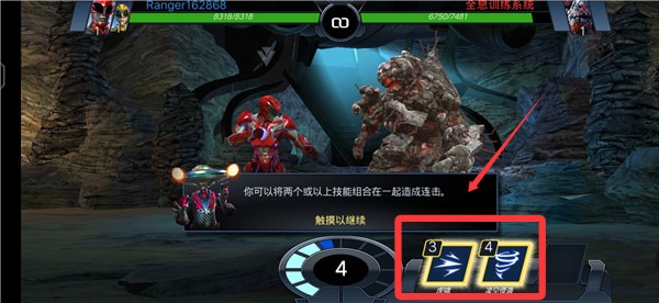 3、當(dāng)能量值達(dá)到一定數(shù)量就可以使用技能,在一個技能釋放完后接上另一個技能就能觸發(fā)組合連擊。