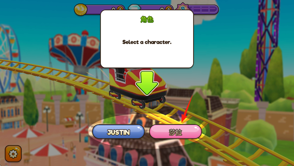 1、角色選擇界面,可選JUSTIN莎拉,背景是游樂(lè)園場(chǎng)景(摩天輪、過(guò)山車等)。