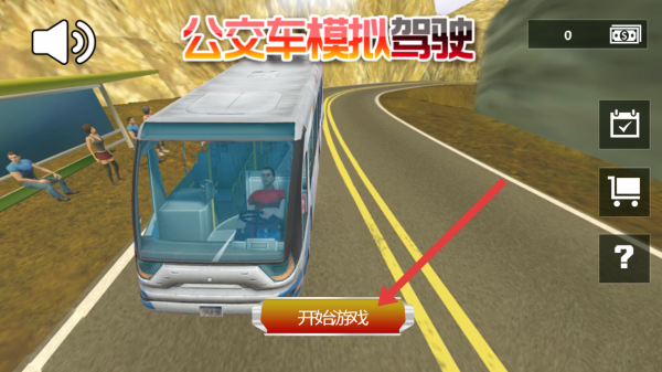 1、在公交車(chē)模擬器駕駛的游戲啟動(dòng)界面,點(diǎn)擊【開(kāi)始游戲】按鈕,進(jìn)入公交車(chē)模擬駕駛關(guān)卡。