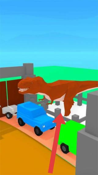2、場(chǎng)景似恐龍園區(qū)或牧場(chǎng),呈現(xiàn)恐龍與人類(車輛代表人類行動(dòng))在游戲場(chǎng)景里的互動(dòng)情境。