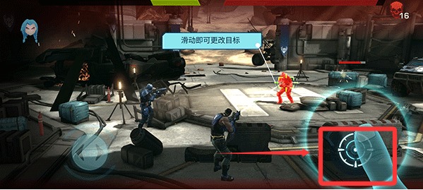 2、滑動又下角的瞄準鍵,更換瞄準的敵人。