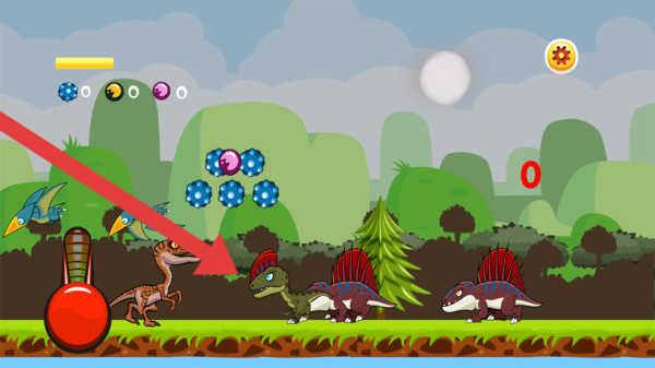 2、關(guān)卡中,操控恐龍角色,按箭頭指引,在侏羅紀場景移動,躲避障礙、收集道具,應(yīng)對其他恐龍。