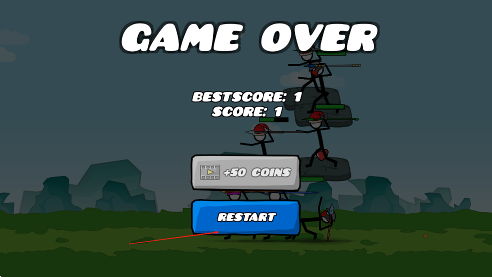3、輕松換裝系統(tǒng):提供數(shù)十款火柴人造型與標(biāo)槍皮膚,從武士刀風(fēng)格標(biāo)槍到科幻激光長槍,滿足個性化搭配。
