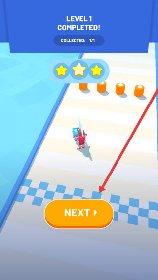 3、在通關(guān)結(jié)算頁,點(diǎn)擊【NEXT】,進(jìn)入下一關(guān),繼續(xù)跑酷挑戰(zhàn),爭取收集更多物品,解鎖三星評價。