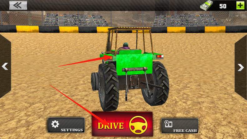 1、進(jìn)入廢車場戰(zhàn)場,啟動銹跡斑斑的拖拉機(jī),轟鳴的引擎震落車身灰塵,操控方向盤對準(zhǔn)遠(yuǎn)處對手,開啟首場碰撞對決。
