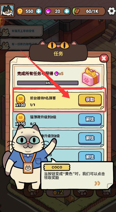 2、生動(dòng)的貓咪員工系統(tǒng),每只貓店員都有獨(dú)特性格和專長(zhǎng),通過悉心照料提升它們的工作效率,解鎖特殊咖啡配方。