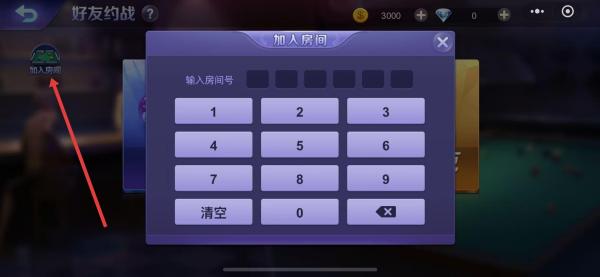 3、完成玩法選擇后,在界面中找到加入房間按鈕,彈出房間號(hào)輸入窗口,確輸入好友創(chuàng)建房間時(shí)生成的房間號(hào),進(jìn)入好友創(chuàng)建好的對(duì)戰(zhàn)房間。