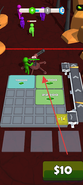 2、戰(zhàn)斗中收集敵人掉落的彈藥資源,拖動資源至防御設(shè)備完成升級,提升射速、射程與穿透力,應(yīng)對更密集的敵人潮。