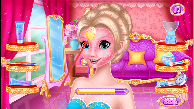 1、點(diǎn)擊浴缸放滿泡泡浴,用火山泥面膜給公主深層清潔。