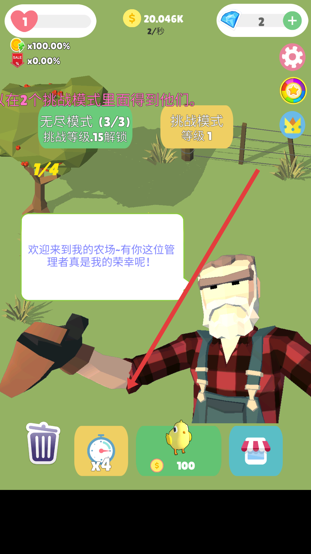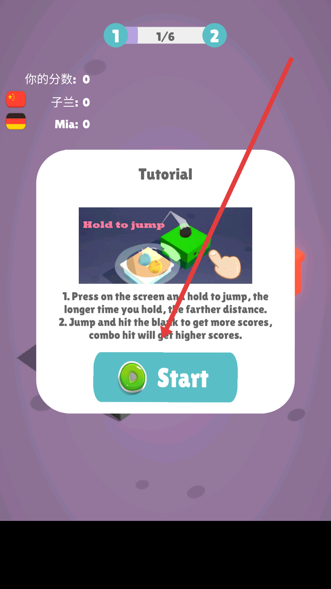 1、點擊Start,開局先來一把跳一跳,測試你農(nóng)場小雞的戰(zhàn)斗力。
