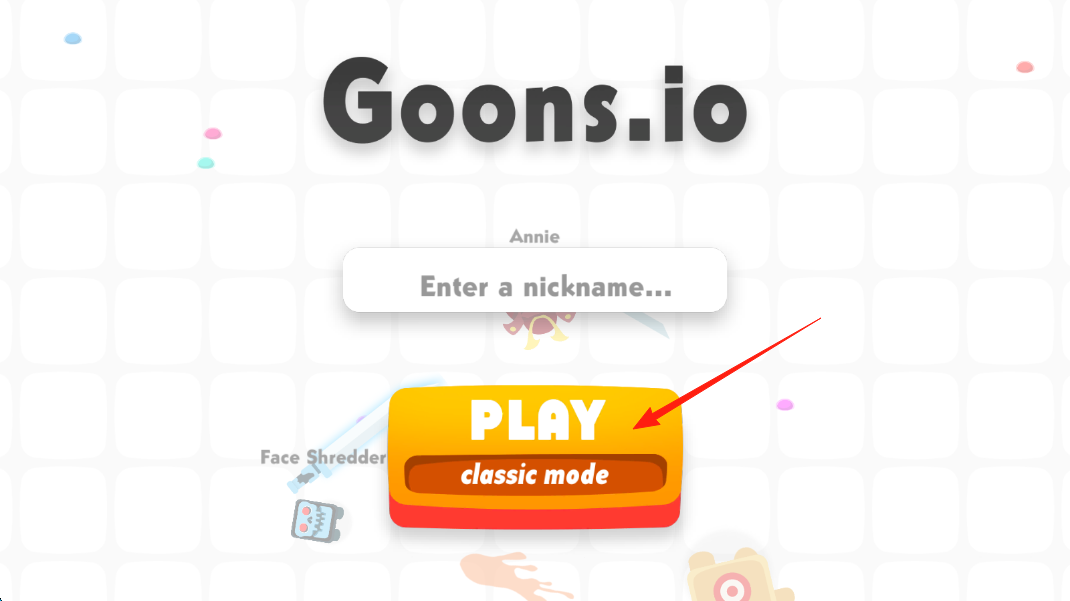 1、輸入昵稱后點擊“PLAY”,進入經(jīng)典模式,操控角色持劍在地圖行動。