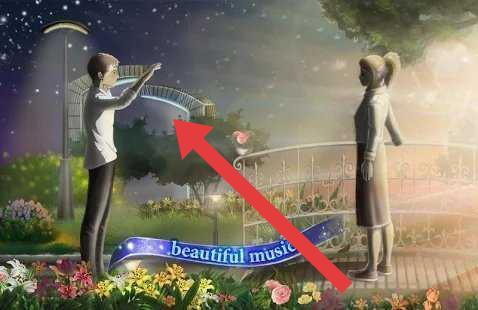 2、加載后進(jìn)入互動(dòng)場景,操控男主角,按箭頭指引向女主角做出動(dòng)作(如邀約手勢),觸發(fā)“beautiful-music”浪漫劇情,推進(jìn)故事線。