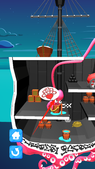 1、基礎(chǔ)破壞玩法:滑動屏幕操控八爪魚移動,點擊觸須瞄準(zhǔn)船只薄弱部位(如桅桿、船艙),長按蓄力觸發(fā)強(qiáng)力拉扯,直至船只完全沉沒。
