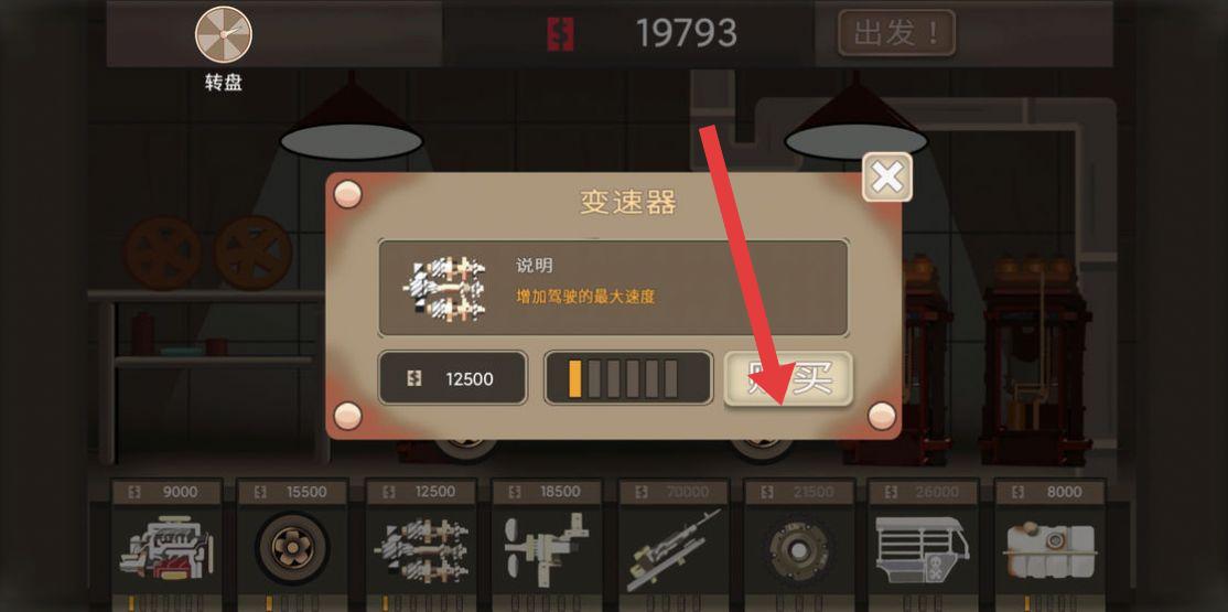 3、改裝時,搭配發(fā)動機、輪胎等配件,根據(jù)任務需求(速度/載重)調整,點擊對應配件購買、安裝,優(yōu)化車輛性能。