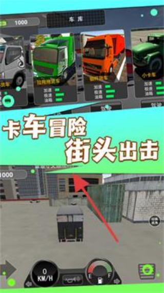 1、選綠色、橙色等卡車(如“拉貨快遞車”),點(diǎn)擊進(jìn)入“卡車冒險(xiǎn)街頭出擊”模式。