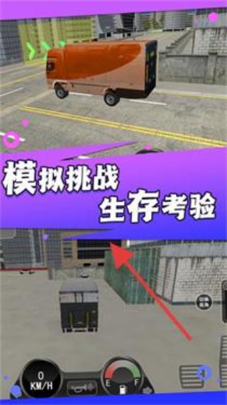 2、駕駛卡車在城市道路行駛,完成“模擬挑戰(zhàn)生存考驗(yàn)”,避障礙、按規(guī)則送貨。
