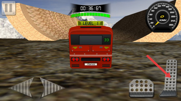 2、在游戲內(nèi)需要點(diǎn)擊車輛右側(cè)踏板的圖標(biāo),操控自己的巴士加速,應(yīng)對地形開啟駕駛進(jìn)程。