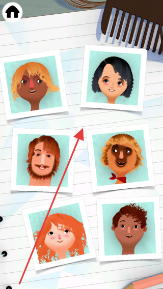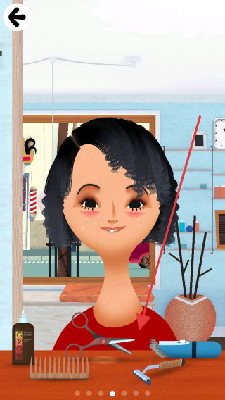 2、選箭頭指的顧客(黑短發(fā)),進(jìn)入美發(fā)場(chǎng)景,準(zhǔn)備用剪刀、梳子等工具,按需求設(shè)計(jì)發(fā)型,體驗(yàn)創(chuàng)意理發(fā)。