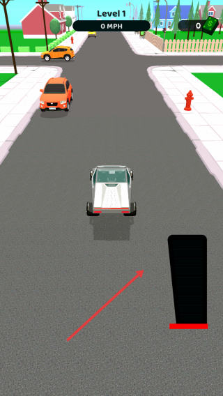 2、進(jìn)入“Level1”,沿道路行駛,避橙色車輛,用加速條控速度(0MPH起步)。