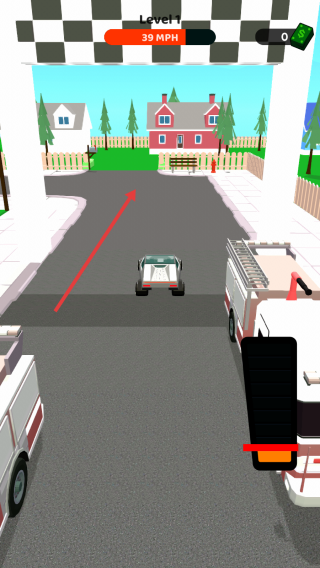3、過路口、躲消防車,保持39MPH左右,沖過終點(黑白格旗),完成競速。