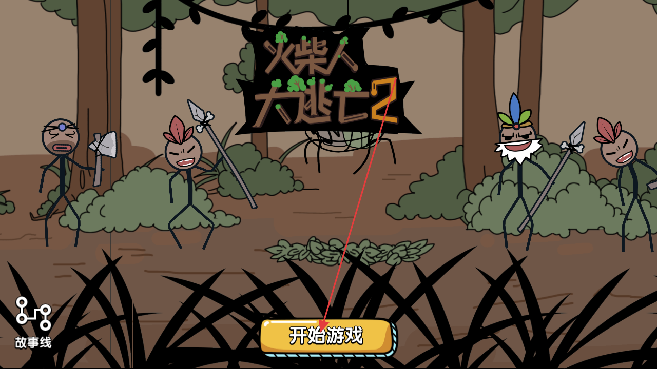 1、點擊“開始游戲”,進入火柴人逃亡劇情,在場景(如牢房)遇選擇分支(靜候時機/勇猛反抗)。