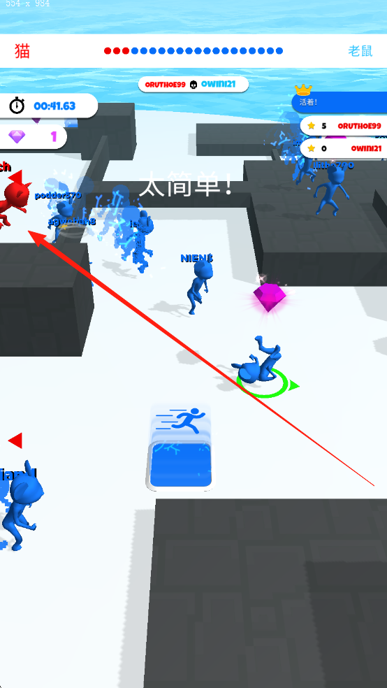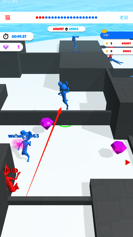 2、場(chǎng)景互動(dòng)網(wǎng)絡(luò):場(chǎng)景中分布多種功能道具,加速道具提升移動(dòng)速度,隱身道具暫時(shí)躲避追捕,障礙道具阻擋追捕者,合理規(guī)劃道具使用順序提升逃亡效率。