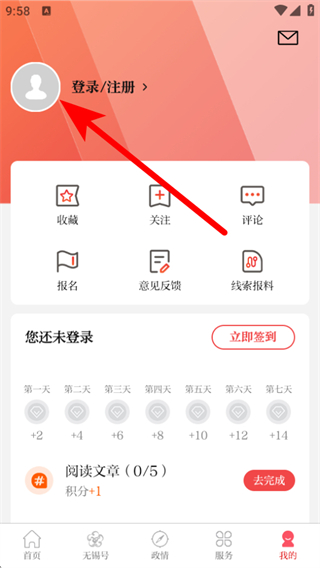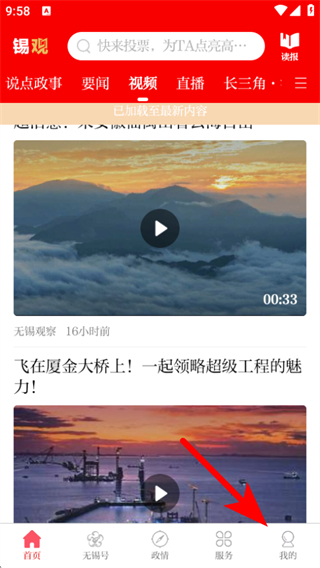 1、打開無錫觀察app,在首頁點(diǎn)擊底部我的,進(jìn)入個(gè)人頁面。