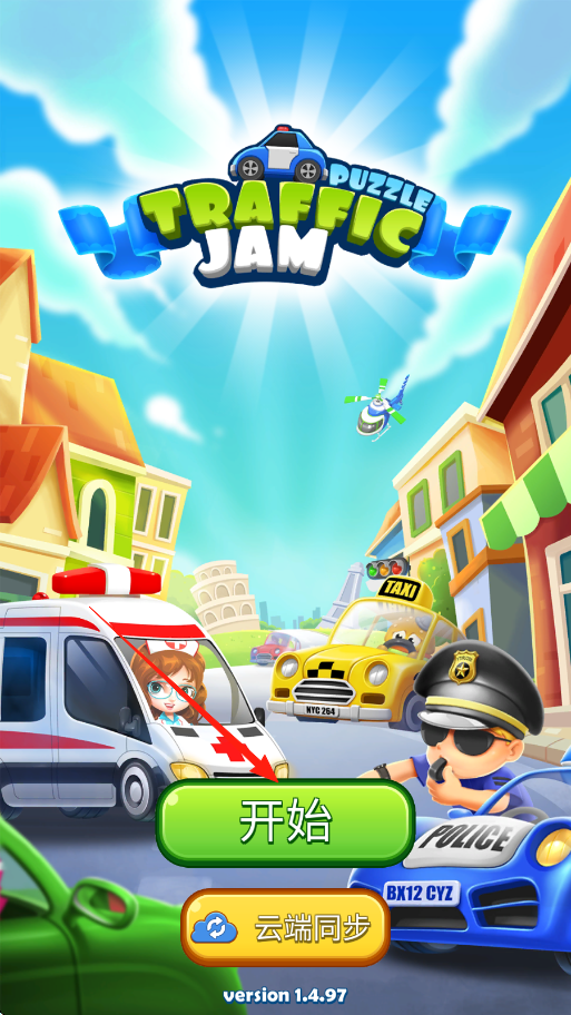1、點(diǎn)擊開(kāi)始進(jìn)入關(guān)卡,觀察車(chē)輛布局,滑動(dòng)屏幕移動(dòng)車(chē)輛,疏通道路。