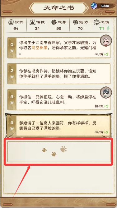 3、命運事件貫穿游戲全程,從奇遇、試煉到天機預(yù)示,變化莫測的局勢促使人不斷調(diào)整策略,應(yīng)對挑戰(zhàn)。