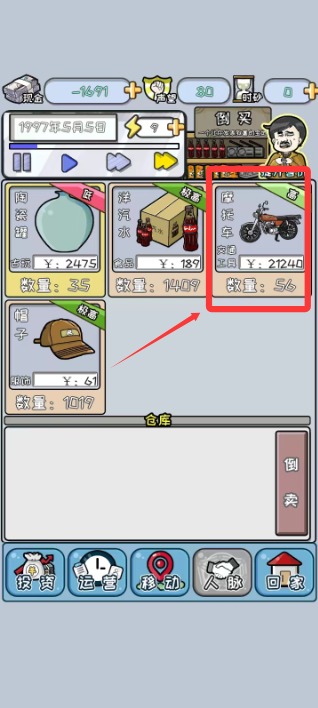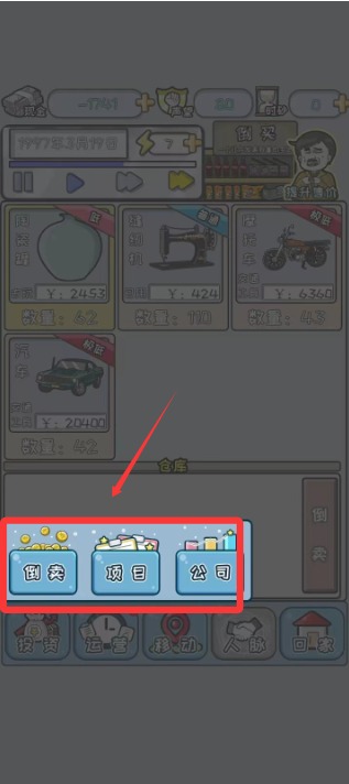 2、然后跟著教程走,教程結(jié)束以后,可以點(diǎn)擊投資,選擇賺錢的方式,一共有三種倒賣、項(xiàng)目以及公司。